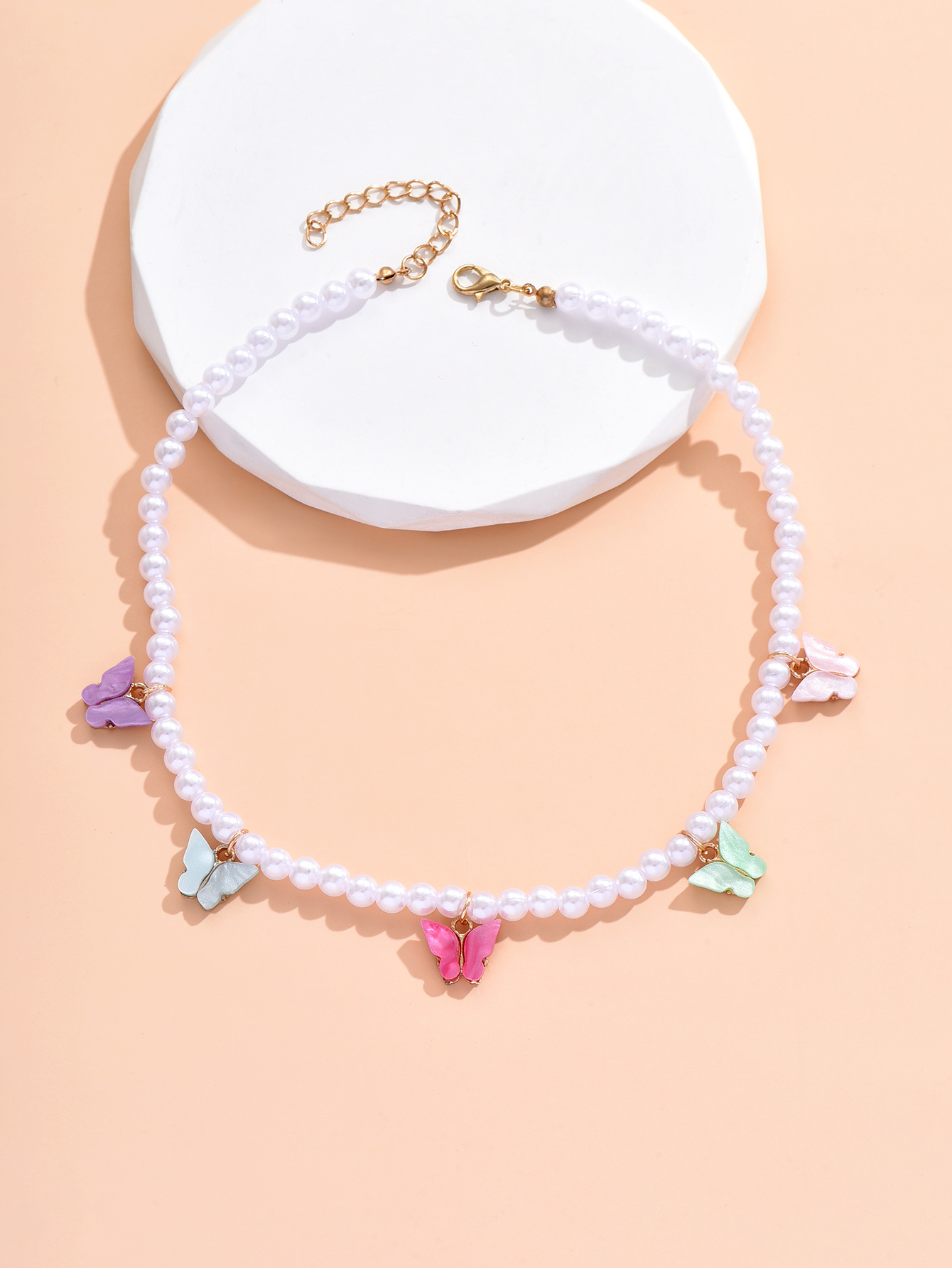 European Style NL409 Alloy Pearl Butterfly Pendant Necklace with 10cm Chain