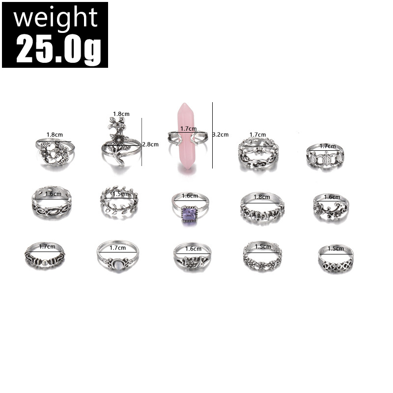 - ["15-piece jewelry set with vintage design","Made with alloy and gemstones","Stylish and fashionable","Perfect for gifting","Suitable for any occasion"]
