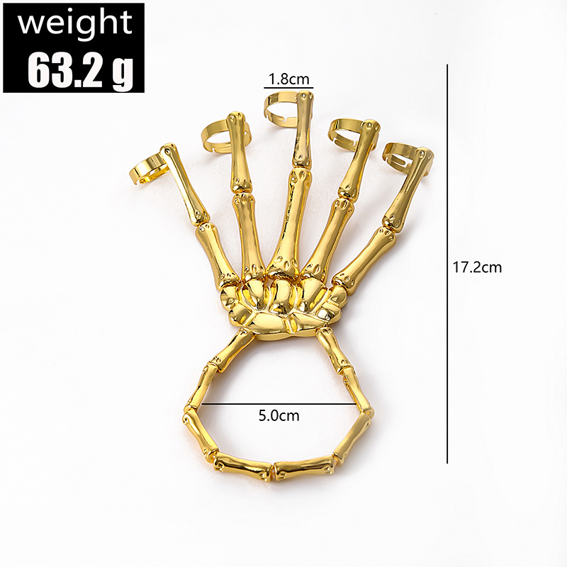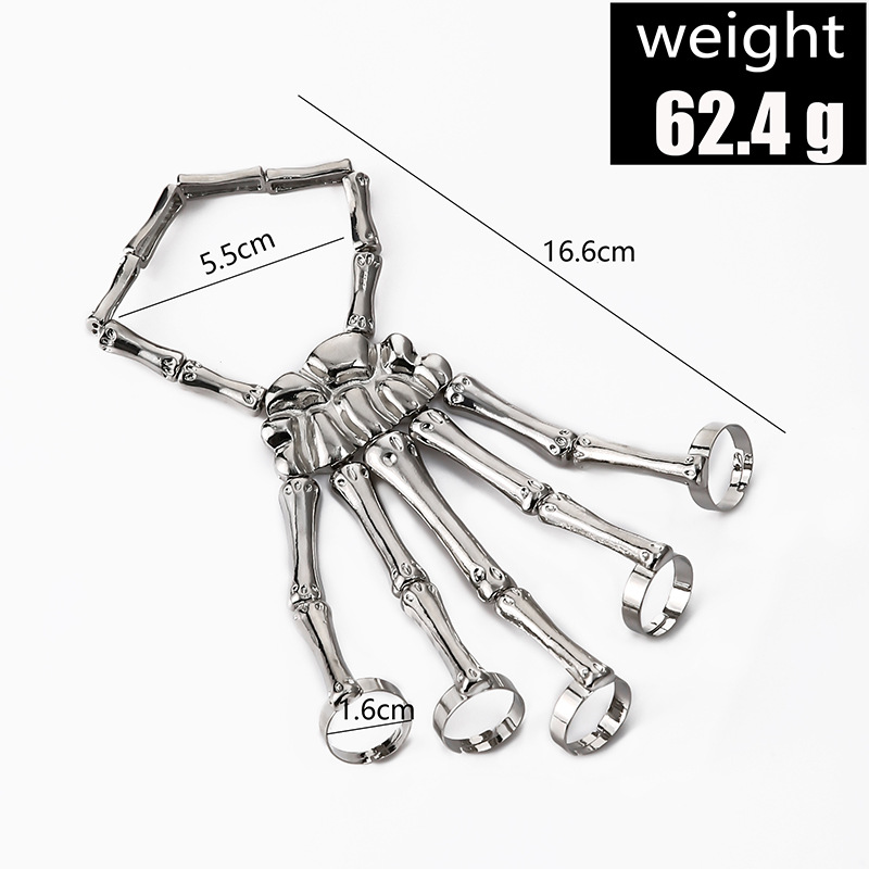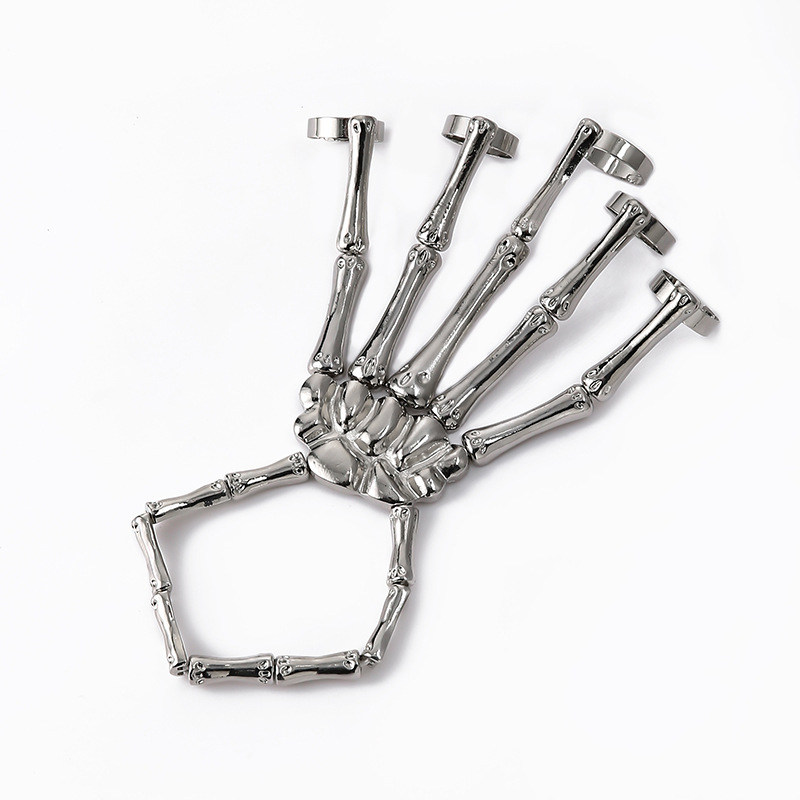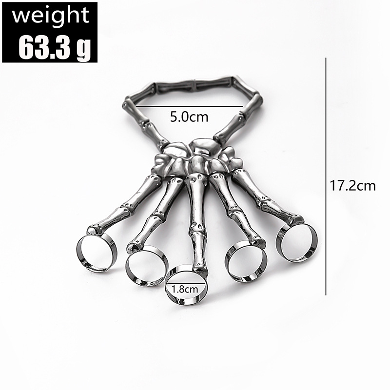 Fashion Punk Skull Hand Bone Adjustable Five Finger Ring Hand Chain