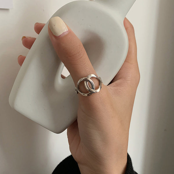 925 Silver Vintage Weave Cross Hollow Out Personality Ring with Luxury Design