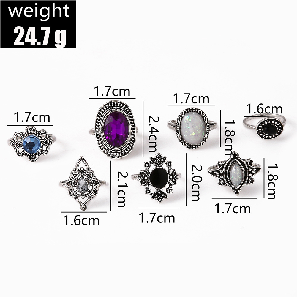 Vintage Crystal Jewelry Set with 7 Pieces of Alloy, Zircon, Black Gemstone Rings