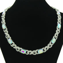 Stunning Personality Rectangle Colorful Water Drill 8 Word Chain Splicing Cuban Chain Necklace Hip-hop Cool Short Lockbone Necklace