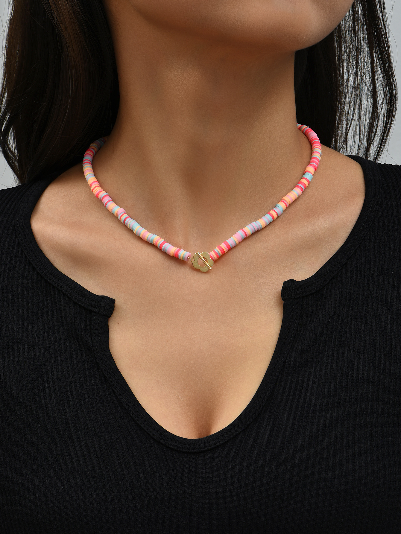 European Style Soft Clay Lock Necklace with Flower Buckle for Kids and Adults