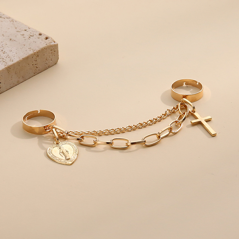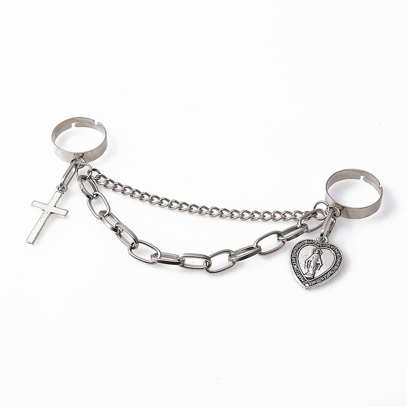Adjustable Cross Pendant Chain Ring for Men and Women
