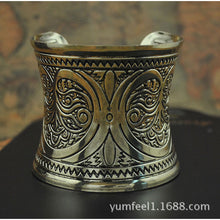 Retro Floral Engraved Women Bangle with Gold Alloy and Titanium Steel Material