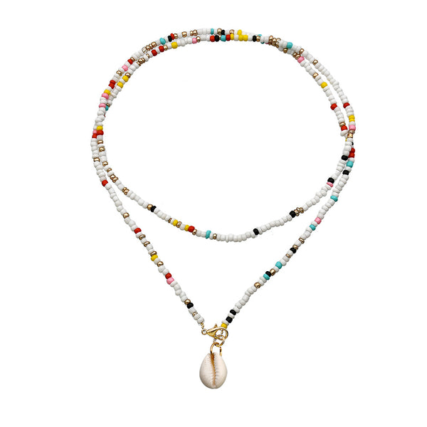 Fashionable Handmade Double Layer Shell Necklace with Colorful Beads