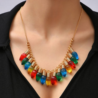 - ["Stylish and fashionable design","High quality alloy material","Unique multicolored acrylic pendant","Ethnic style chain","Suitable for wedding, travel souvenir, employee benefits, etc."]