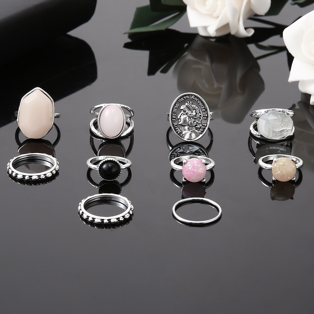 Oval Black Gemstone Ring Set for Men and Women, Alloy Material, European and American Style, Jewelry Processing Craftsmanship, Suitable for Gift Occasions, Independent Packaging
