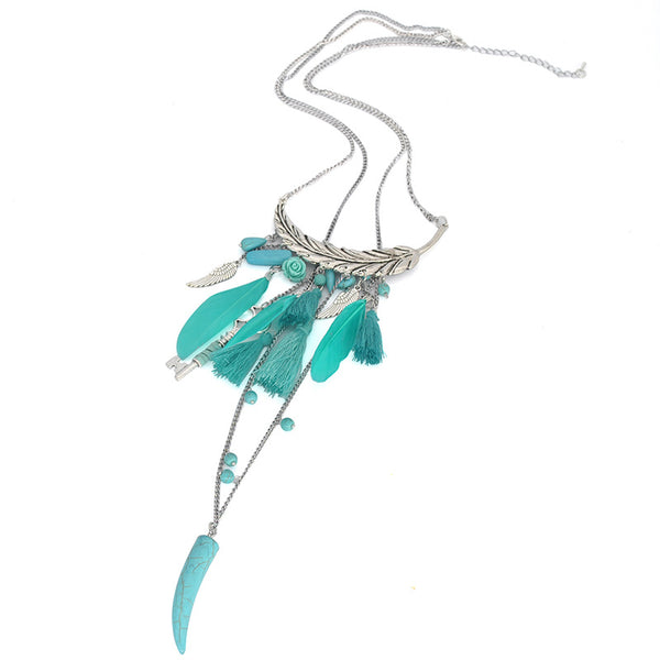 N2054 Women's Nickel Alloy Necklace with Multiple Colors and Tassel Decoration