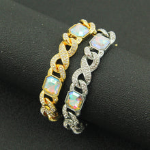 Men's 8-Word Rectangle Color Diamond Personalized Splicing Bracelet Cuban Chain Bracelet