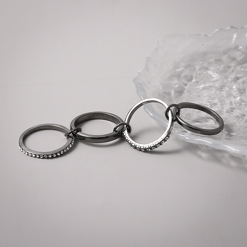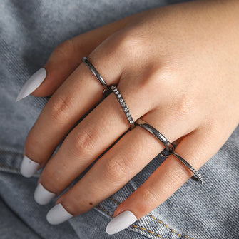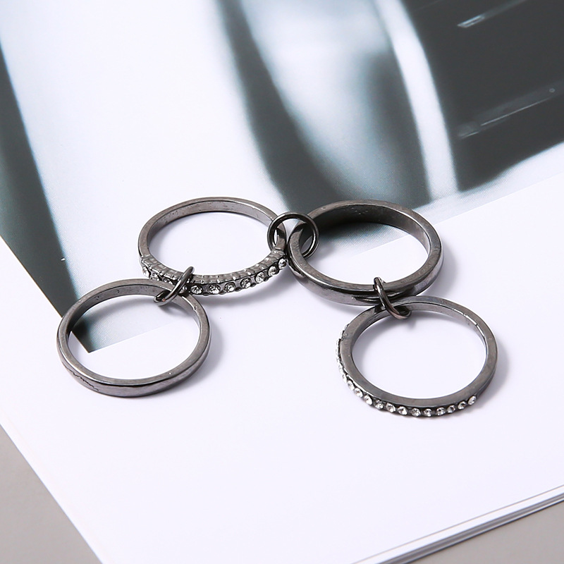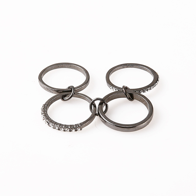 - ["4 pieces set with gun black color finger rings","Made of alloy material","Korean style/Korean fashion design","Various types of design","Suitable for festival gift occasions"]