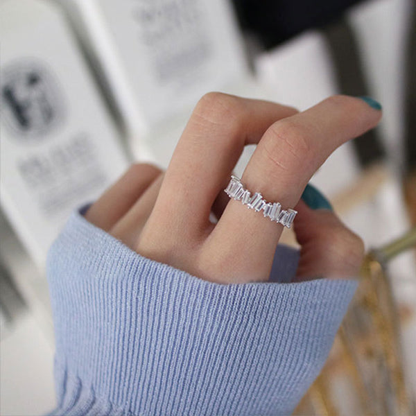 925 Silver Crystal Cut Mini Braid Ring for Women, Korean Style