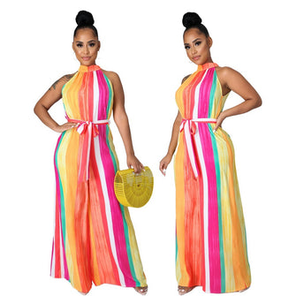 Women's Casual Color Block Jumpsuit with 90%-95% Polyester Blend Fabric