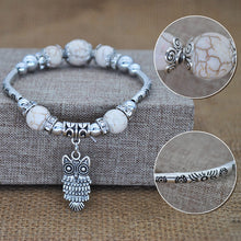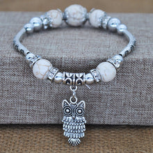 Vintage Ethnic Green Beads Necklace with Owl Pendant for Women