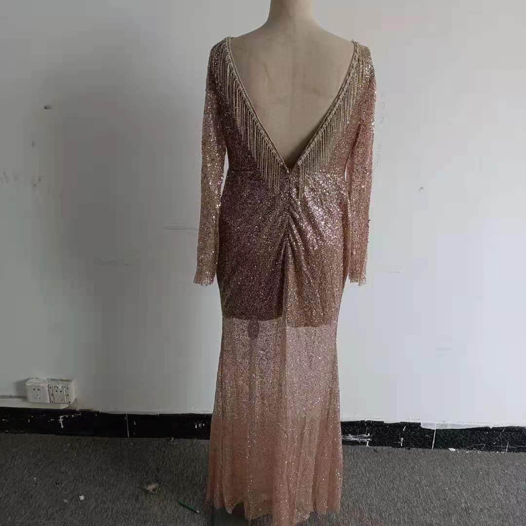 Bright Shining Long Sleeve Casual Backless Gold Glitter Dress for Women in Spring