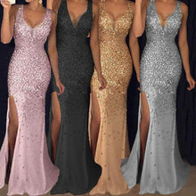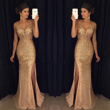 Women's Elegant Gold V-Neck Open Back Long Dress for Weddings