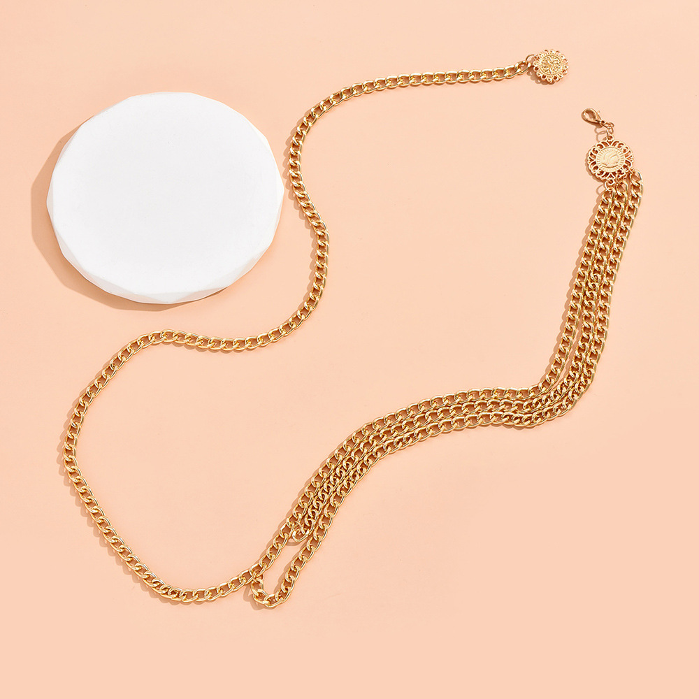 Fashionable Gold Alloy Multilayer Exaggerated Body Chain for Women with Queen's Head Image Retro Street Snap Waist Chain