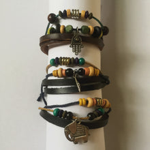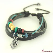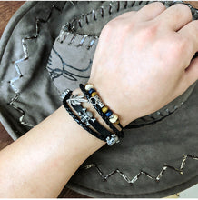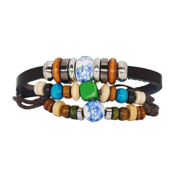 Retro Eye of Devil Bracelet Handmade Wood Beads Braided Leather Rope Chain for Men and Women