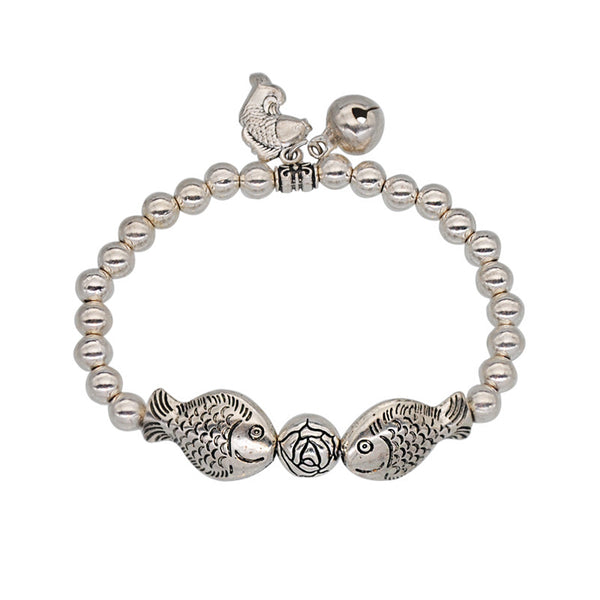 Handmade Silver Ethnic Bracelet with Gold Alloy Processing and Other Protective Functions