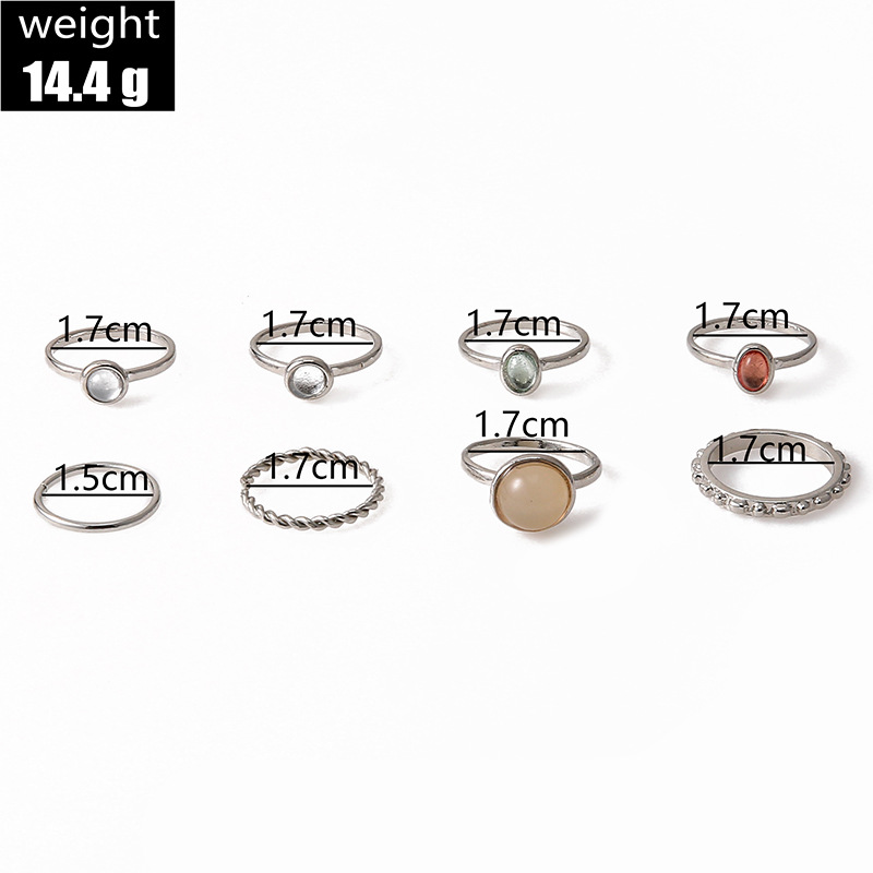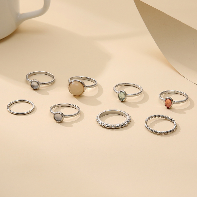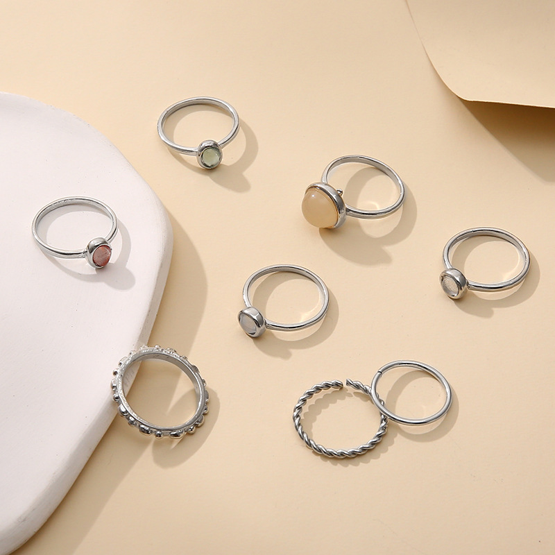 - ["Made of Alloy material, durable and fashionable","8-piece joint ring set in champagne color","European and American style, geometric shape","Electroplating process, exquisite craftsmanship","Suitable for festivals and other occasions"]