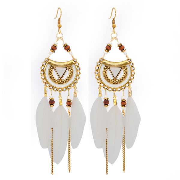 Bohemian Feather Earrings with Natural Material from Yiwu, China