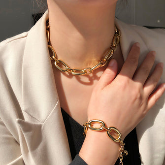 European and American Style Fashionable Gold Choker Necklace with Multiple Layers and Creative Hip-Hop Punk Style