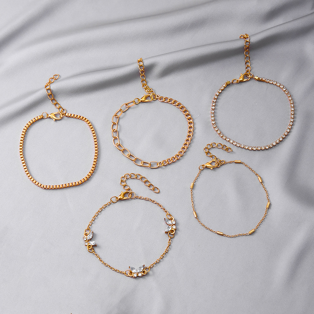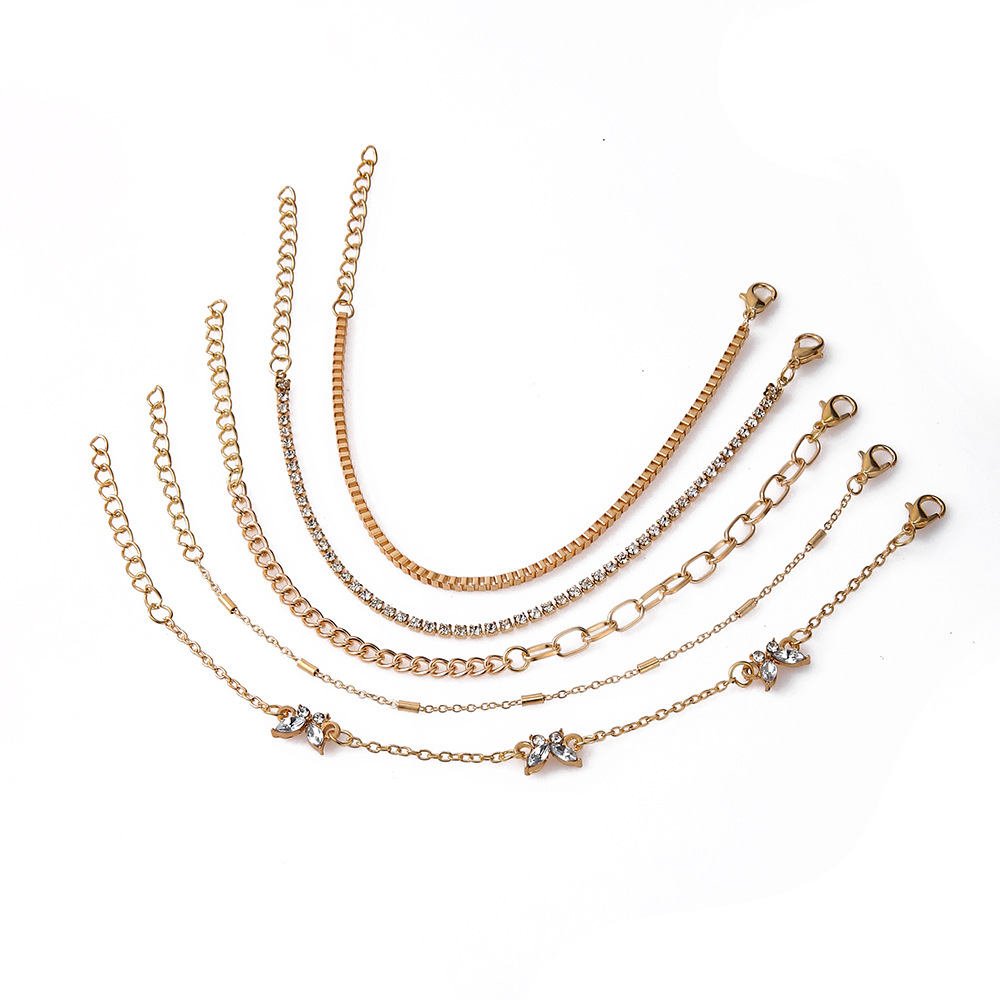 European Style Alloy Hand Chain with Rhinestone and Butterfly Pendant 5-Piece Set