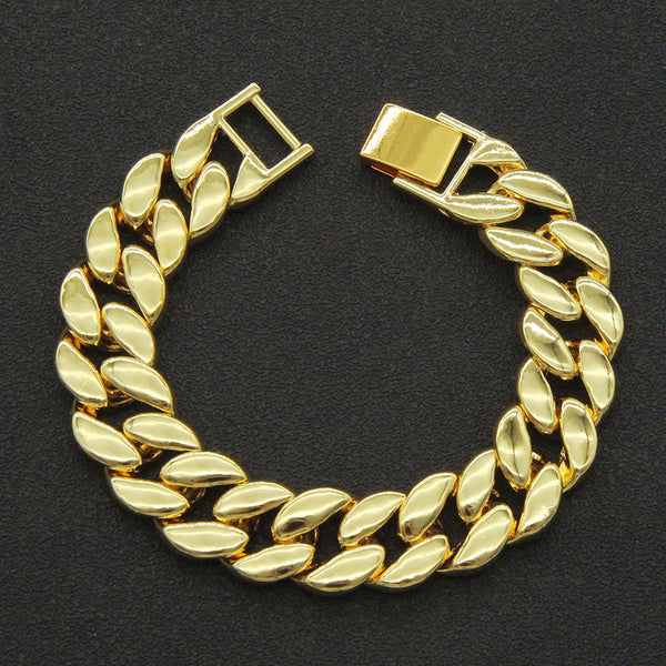 Men's Hip-Hop Cuban Chain Bracelet with Gold Alloy and Electroplating Craftsmanship for Night Club, Party and Travel