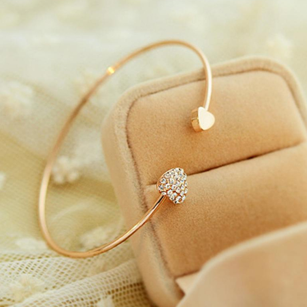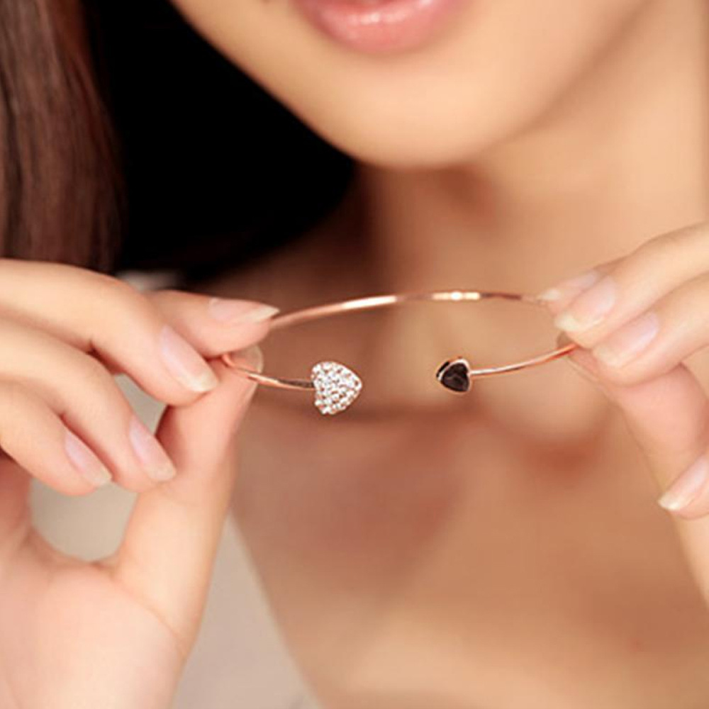 Women Gold Heart-Shaped Double Love Pendant Bracelet with Creative Personality and Simple Style