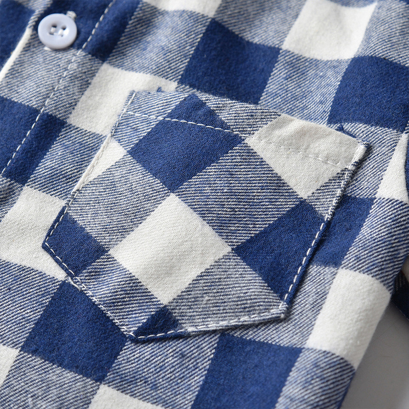 - ["Made of soft corduroy fabric for comfort","Classic plaid pattern for a stylish look","Turn-down collar for a classic look","Long sleeve for extra warmth","Suitable for boys and girls ages 1-3 years, 80-100cm"]