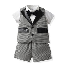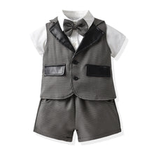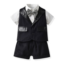 Boy Summer Outfit Set - Short Sleeve Shirt, Leather Collar Vest, Shorts