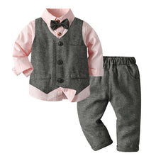 - ["Stylish 3-piece suit set for boys 8 years old and above","European and American style for a classic look","Made of high-quality clothing material","Designed for comfort and durability","Perfect gift for any special occasion"]