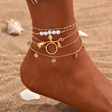 Fashionable Tribal Wind Anklet with Alloy Pendant and Pearl Anklet 5-Piece Set