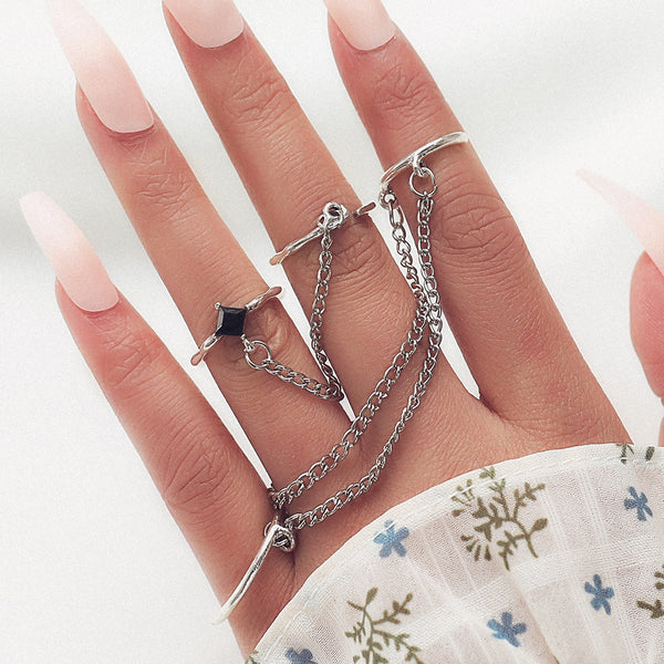Korean Style 2-Piece Chain Rings with Natural Elements and Fresh and Sweet Style