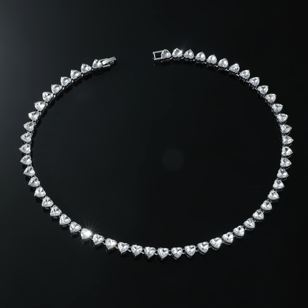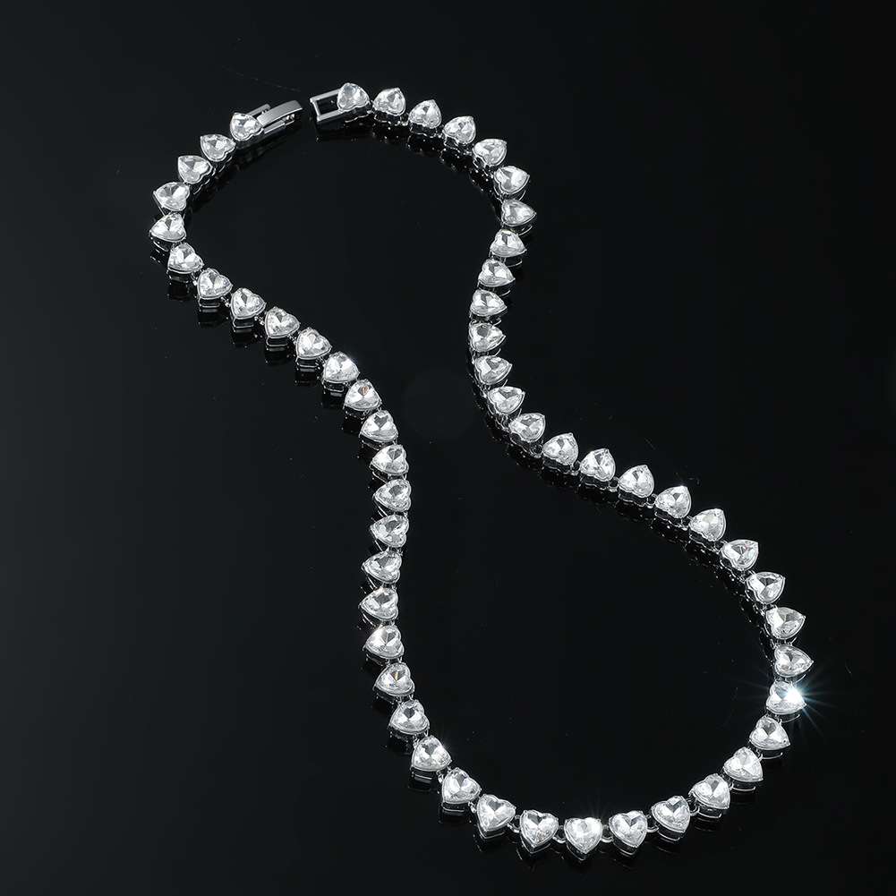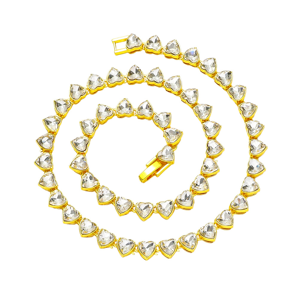 Men's Hip-Hop Glass Heart Necklace with YJ10-6386 Alloy Processing Craft, 21cm-50cm Length