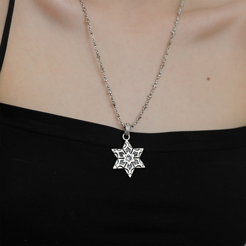 Vintage Six-Pointed Star Pendant Necklace for Women, Stylish and Unique Design, Trendy and Versatile