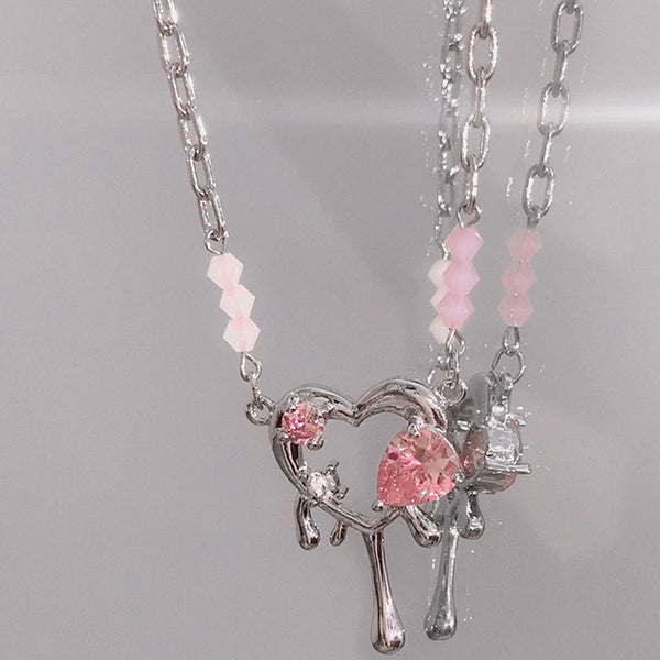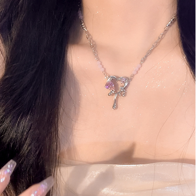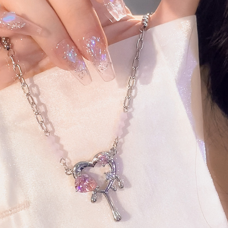 - ["Unique and fashionable love heart pendant design","Made of titanium steel, durable and long lasting","Length is 31cm-40cm, suitable for most people","INs style, perfect for girls to wear","Great gift for your family and friends"]