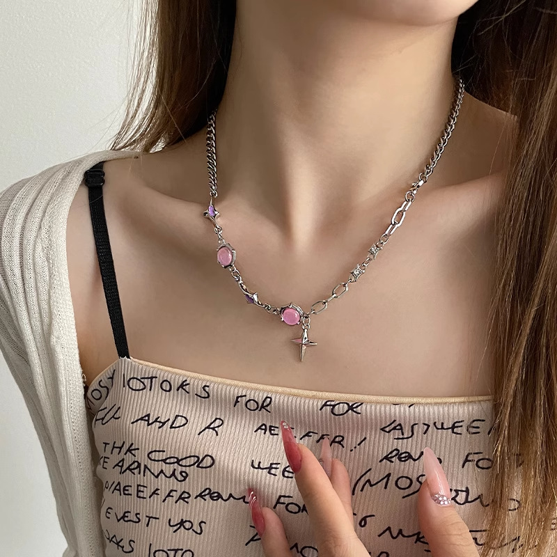 - ["Made of high quality steel material","Fashionable ins style","Suitable for women","Light luxury and small crowd style","Shape of cross"]