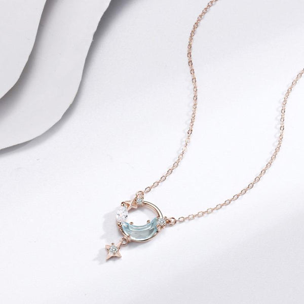 Women's Moon Star Zircon Necklace, Korean Style Luxury Design, 21cm-50cm Length