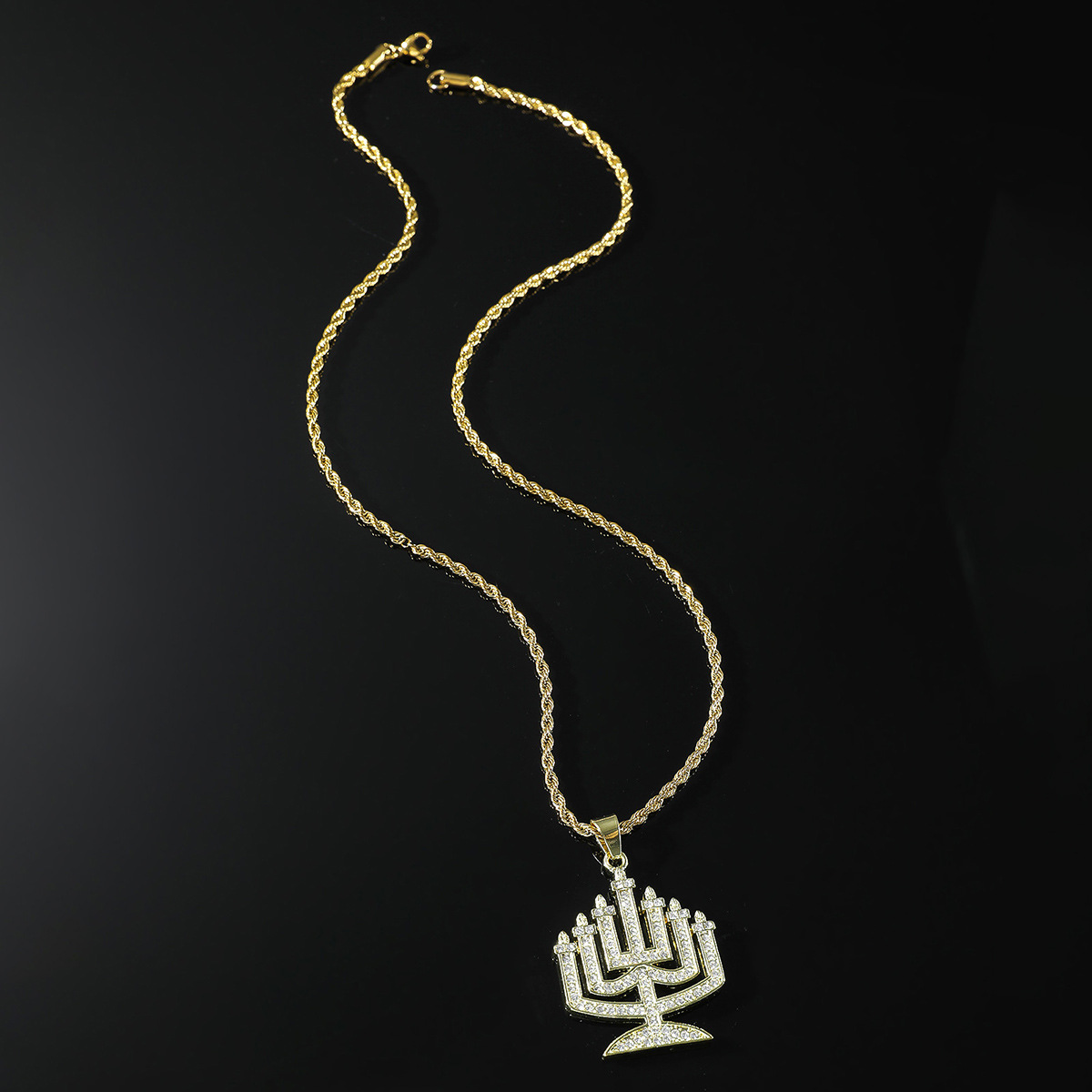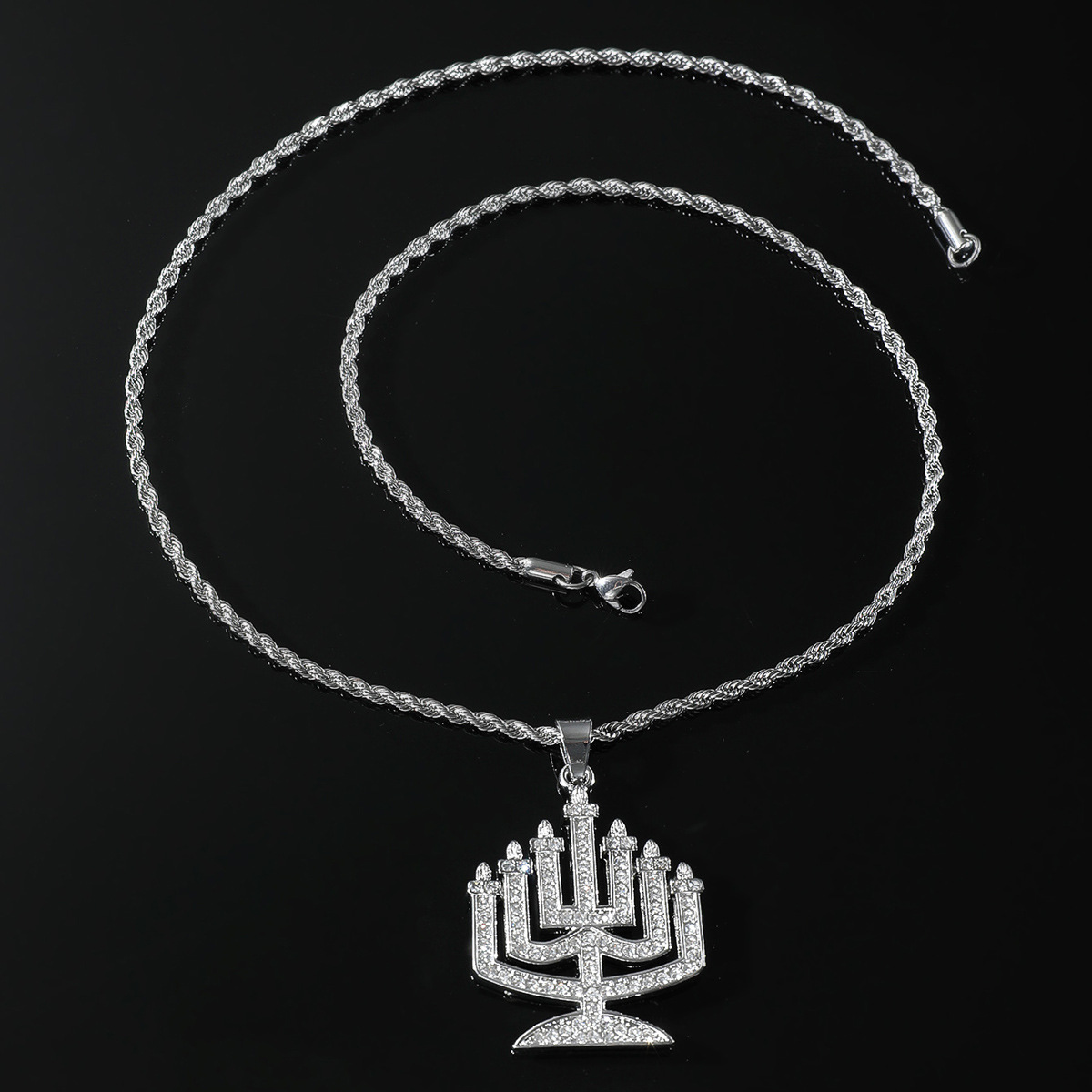 Hot New Diamond Candle Stand Necklace Hip Hop Street Style Cool Personalized Exaggerated Accessories