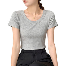 Women's U-Neck Cotton T-Shirt with High Elasticity and Japanese Style for Summer