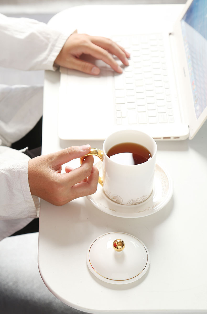 Chinese Style Porcelain Water Cup with Lid and Filter, Perfect Gift for Birthdays, Travel, Graduation, Weddings and More