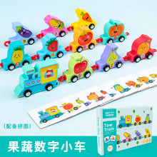Educational Wooden Toy Train for Kids 4-6 Years Old with Cartoon Numbers and Fruits & Vegetables Recognition