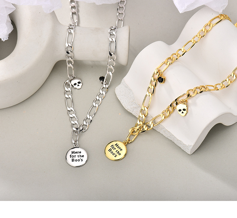 {"Shape":"Geometric","Style":"European and American","Length":"41cm (inclusive) - 50cm (inclusive)","Origin":"Shanwei","Purity":"Copper Plated 18K Gold","Weight":"0.05","Material":"Copper","Chain Style":"O-Link Chain","Multi-Layer":"Yes","Style Category":"Fashionable Commuting","Fashion Element":"Skull","Applicable Crowd":"Female","Pendant Material":"Copper","Processing Technology":"Electroplating","Fashion Element Category":"Shape/Pattern"}