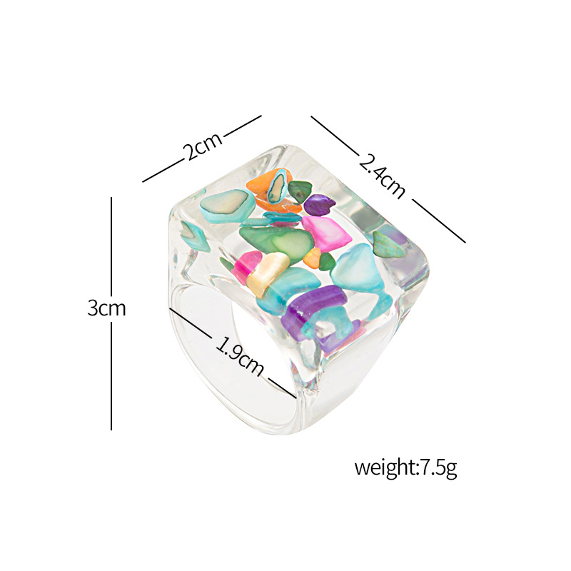 Vintage Resin Ring with Acrylic Inlay and Shells for Women