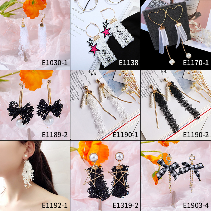 Fashionable Floral Earrings with Brocade, Pearls, Crystals and Lace