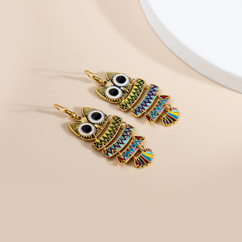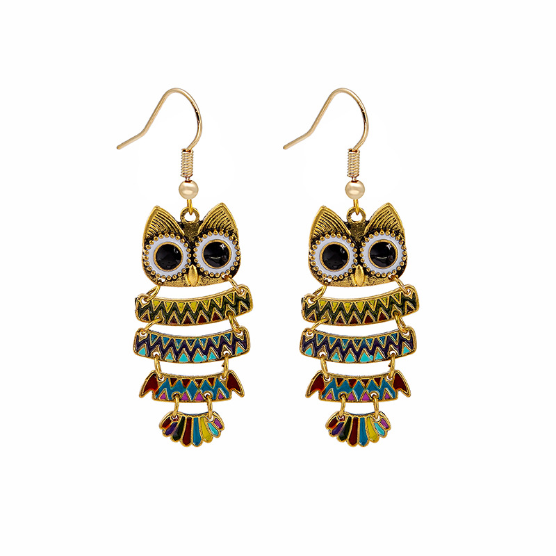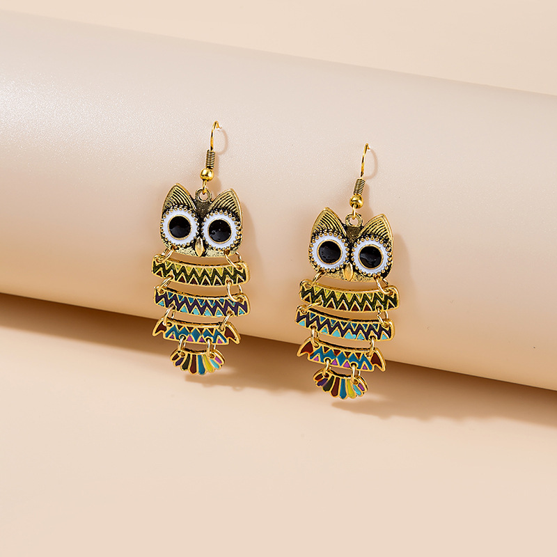 Silver Alloy Owl Earrings for Women with Colorful Glaze and Hip-Hop Style