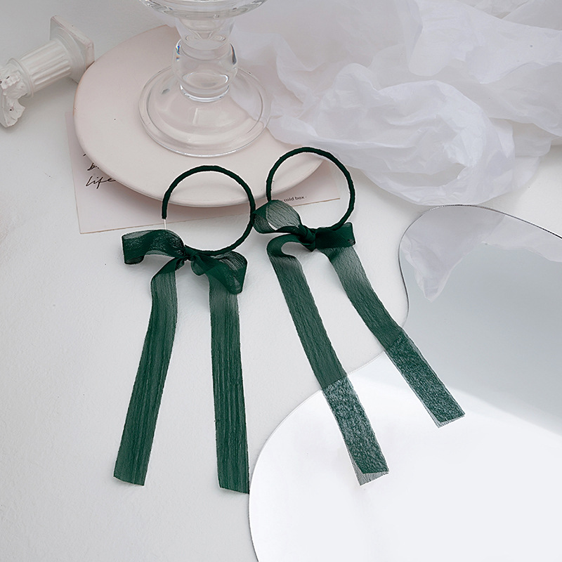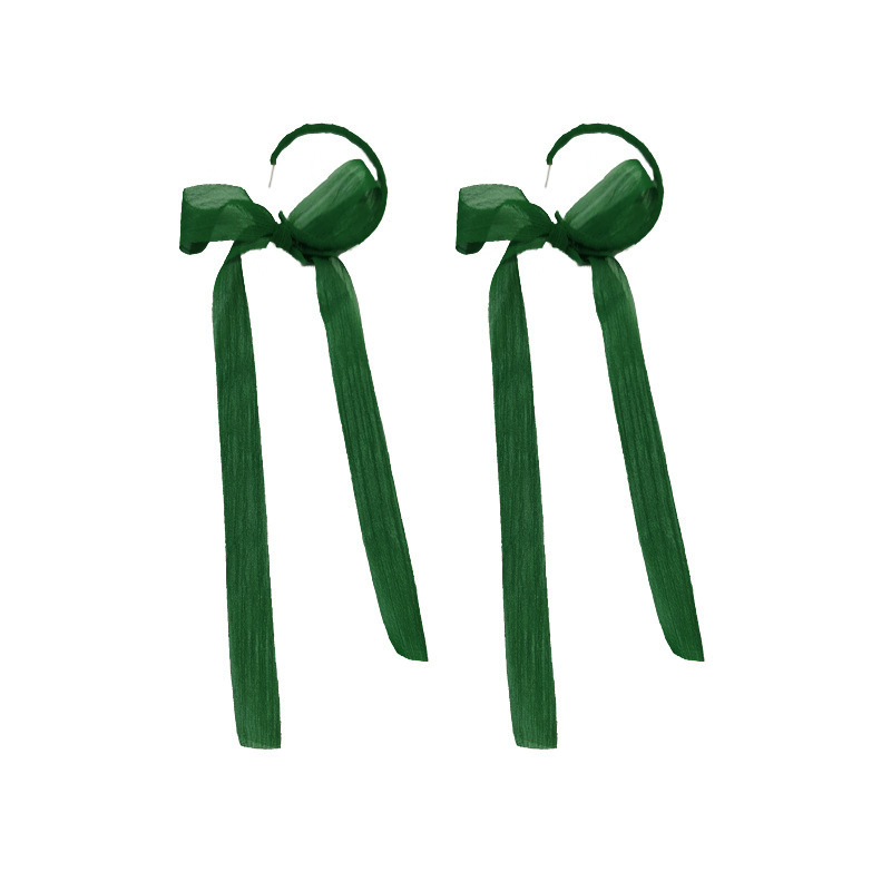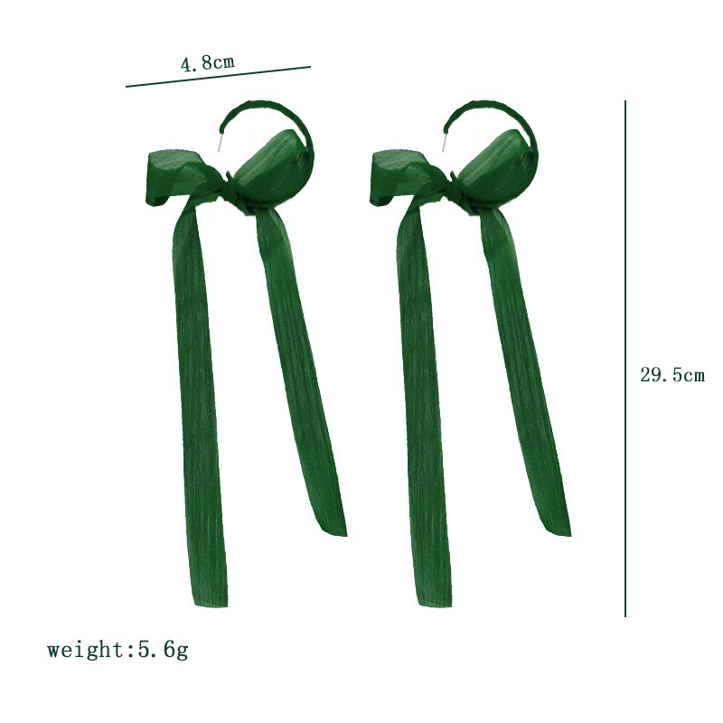 Silver C-Shape Eardrop with French Style Long Earrings and Butterfly Knots