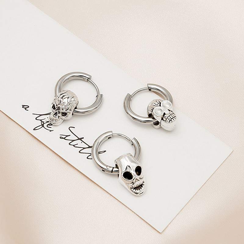 Striking Unisex Stainless Steel Skeleton Earrings with Punk Style