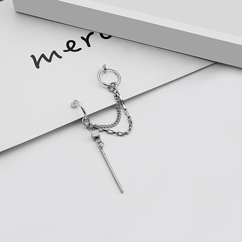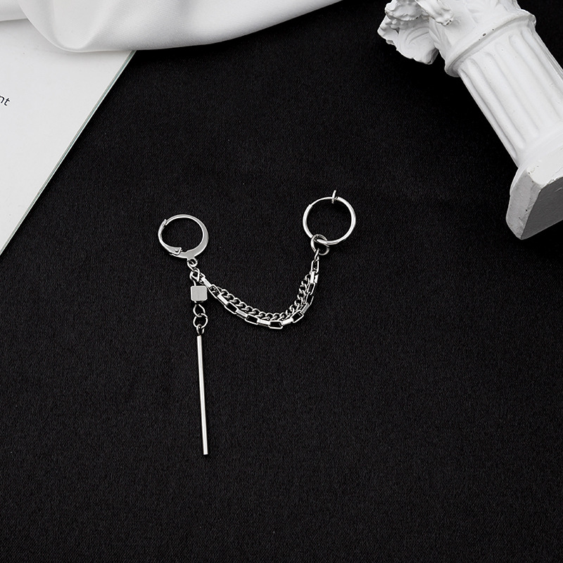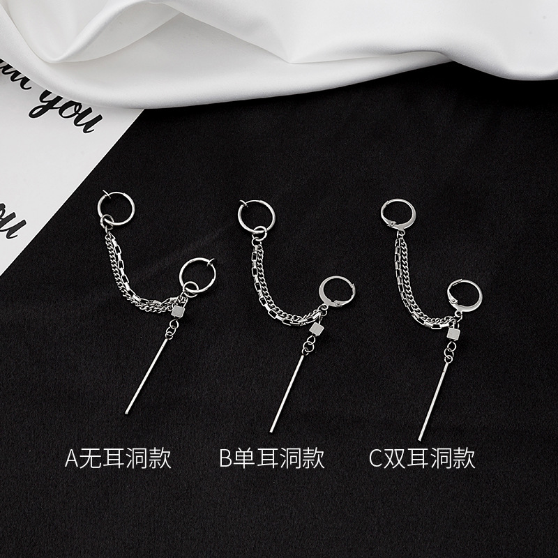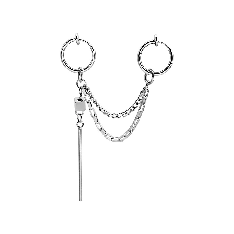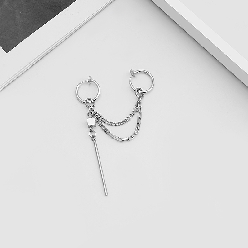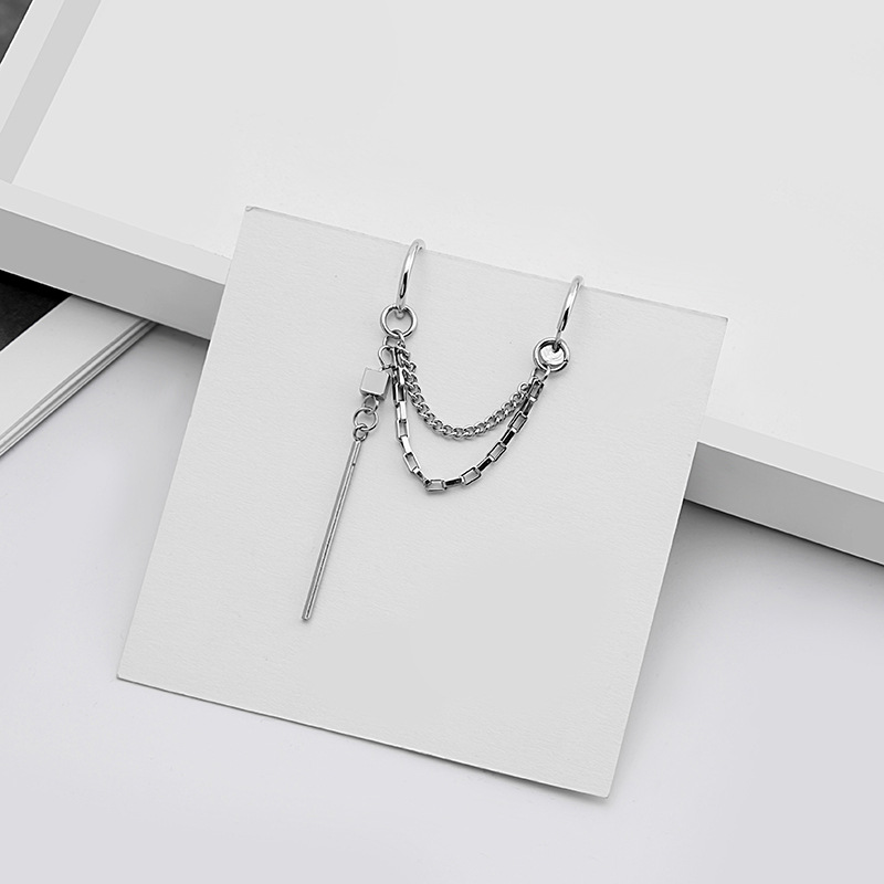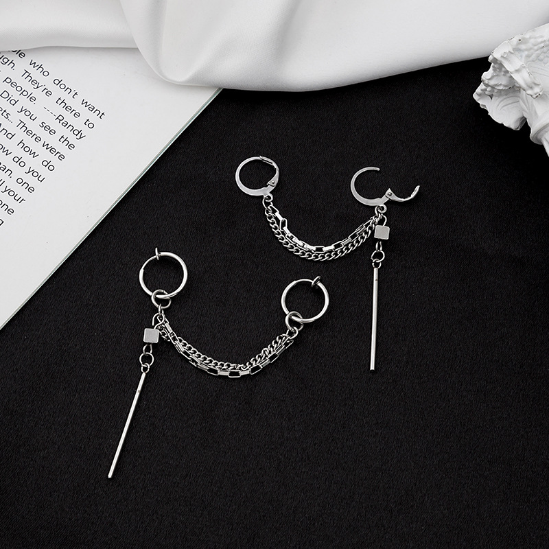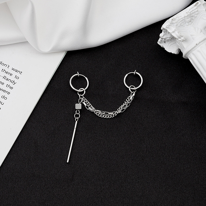 Korean Creative Double-Layer Tassel Earrings Non-Rust Steel Chain Ear Studs Earrings Ear Clips